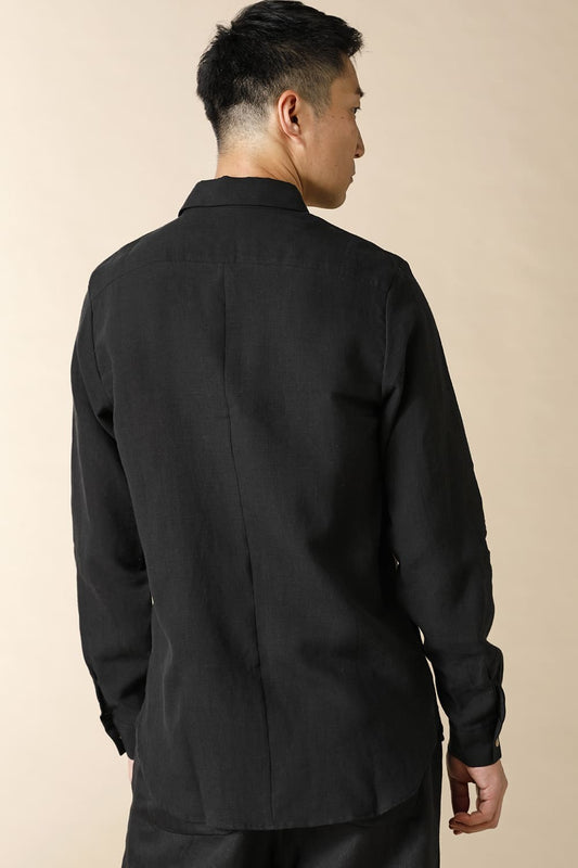 DOUBLE LAYERED WING-COLLARED BASIC SHIRT - SH52-LI12_Black