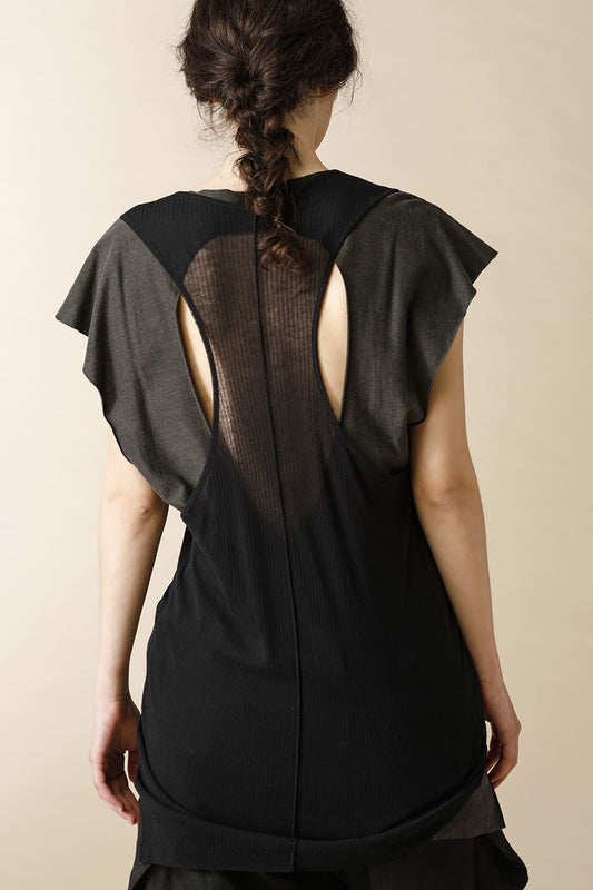 NO SLEEVE LAYERED T-SHIRTS - CT47-LJ34_black&charcoal